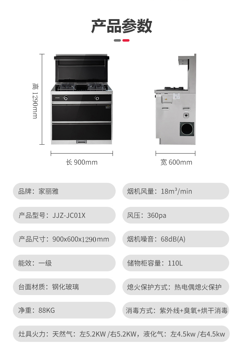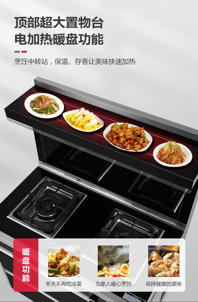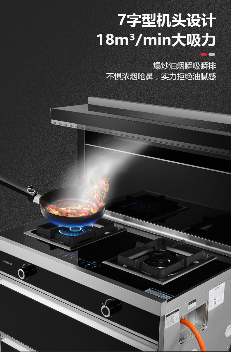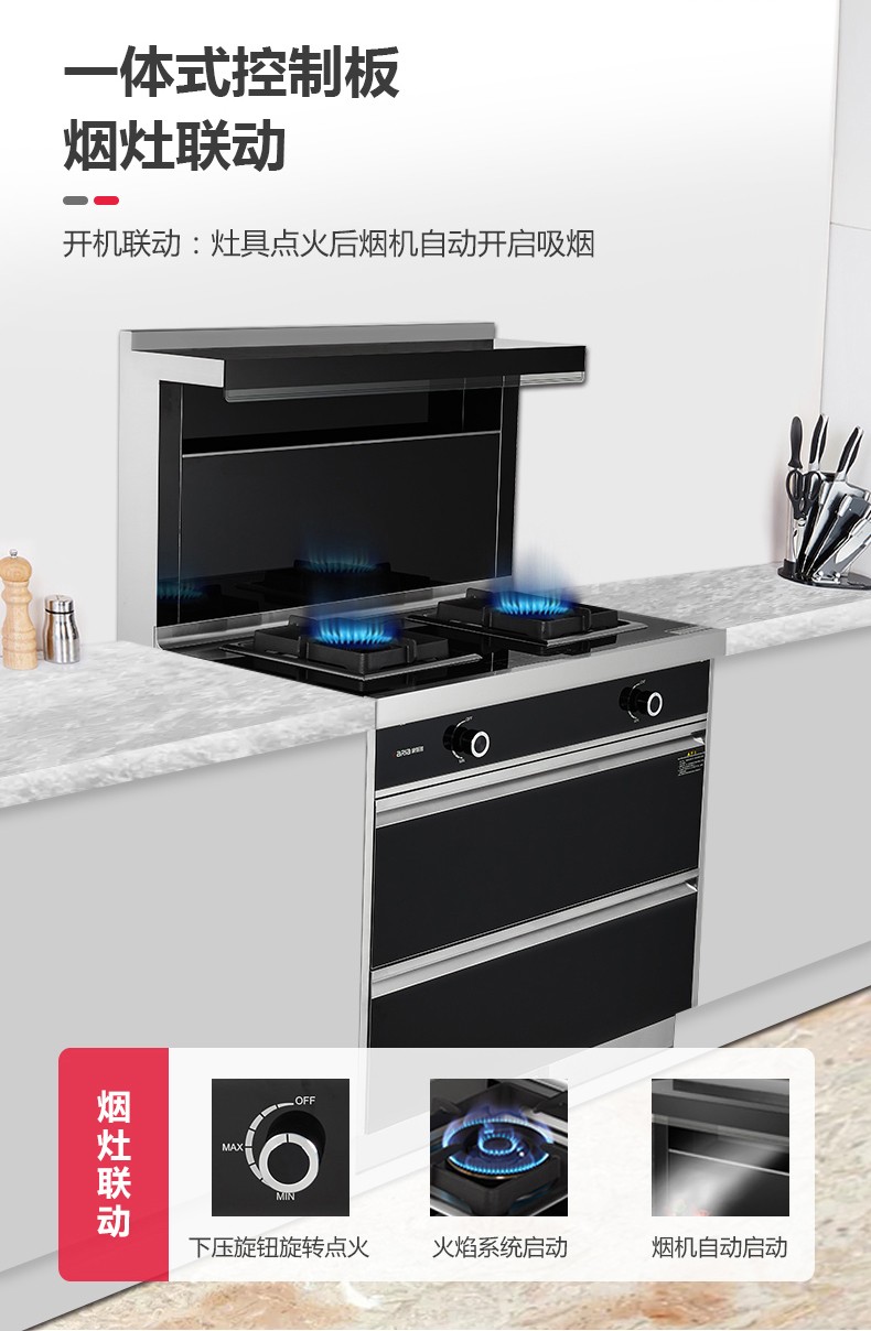 吸油煙機+燃氣雙灶+消毒柜三合一集成功能